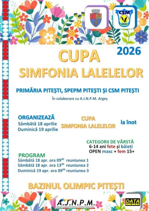 Piteștiul găzduiește Campionatul Național de Copii! În perioada 13–15 martie 2026, Bazinul Olimpic Pitești găzduiește Campionatul Național de Copii (10–11 ani) – Etapa Regională. Tineri înotători din mai multe orașe vor concura pentru calificarea la Campionatele Naționale din această vară. Astăzi, 13.03.2026 are loc antrenamentul oficial, iar prima reuniune de concurs începe la ora 16:00.