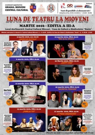 În luna martie va bate gongul pentru “Festivalul de Teatru Mioveni”, manifestarea aflată la a treia ediţie fiind organizată de Primăria Mioveni, Centrul Cultural şi Casa de Cultură a Sindicatelor „Dacia”, în perioada 5-27 martie. Iubitorii de teatru vor avea ocazia să vadă opt piese de top. Biletele vor fi puse în vânzare de luni, […]