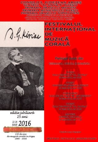 Anul acesta, Festivalul Internaţional de Muzică Corală ,,D.G. Kiriac” are o semnificaţie aparte: se împlinesc 25 de ani de la fondarea acestuia, iar profesorul Gheorghe Gomoiu sărbătoreşte 50 de ani de dirijat. Ediţia jubiliară a prestigiosului festival va avea loc în perioada 22-26 iunie, după cum urmează: -22 iunie, Piteşti, ora 19.00 – sala Teatrului […]