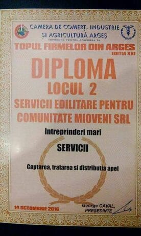 Servicii Edilitare Pentru Comunitate Mioveni a obţinut un merituos loc doi la categoria Inteprinderi Mari, în cadrul Topului Firmelor din Argeş, eveniment organizat de Camera de Comerţ, Industrie şi Agricultură Argeş. Cu o vechime de peste două decenii, Topul Firmelor din Argeș este o sărbătoare a celor mai importanți antreprenori argeșeni, o sărbătoare în cinstea celor […]