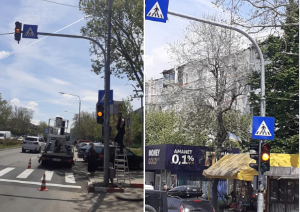 Semafor nou, cu buton, a fost pus în funcțiune în Pitești!