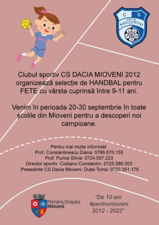 În perioada 20-30 septembrie, CS Dacia Mioveni 2012 organizează selecție pentru inițiere în handbal feminin, adresat grupei de vârstă 9-11 ani! Campania de promovare și selecție se va desfășura în toate școlile din oraș, pentru a descoperi viitoarele sportive care vor îmbrăca tricoul echipei noastre. Proiectul clubului vizează inițierea în handbal, descoperirea talentelor și formarea […]