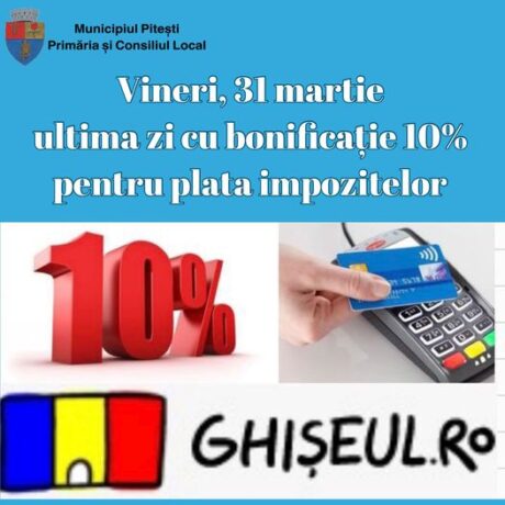 Pitești: 31 martie 2023 – ultima zi cu bonificație de 10% pentru plata impozitelor