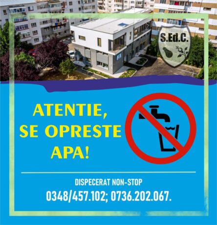 Servicii Edilitare pentru Comunitate Mioveni SRL anunță întreruperea furnizării apei potabile!