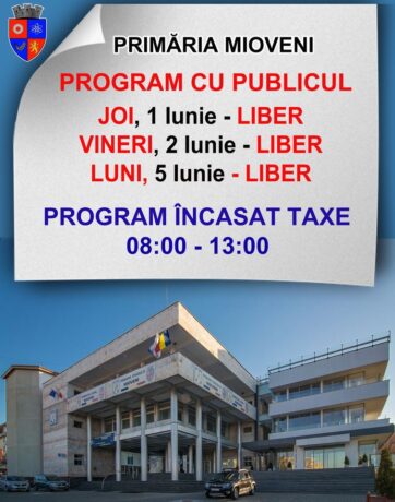 Primăria Mioveni şi instituțiile subordonate – LIBER în perioada 1-5 iunie