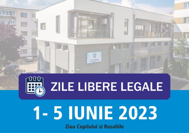 Vă informăm că în perioada 1 – 5 iunie 2023 nu desfășurăm activități de lucru cu publicul, însă dispeceratul, echipele de intervenție precum și personalul care asigură buna desfășurare a proceselor de alimentare cu apă și preluare a apelor uzate, salubritate, ecarisaj, iluminat public, vor lucra în program normal. 1 iunie – Ziua copilului (joi) […]