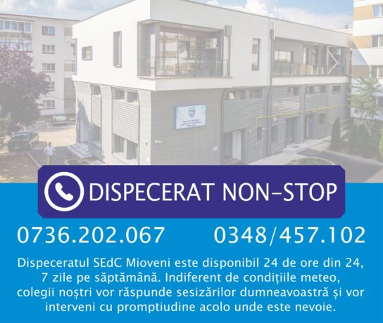 “În perioada sărbătorilor de iarnă, societatea noastră nu desfășoară activități de lucru cu publicul în zilele libere legale, însă dispeceratul, echipele de intervenție precum și personalul care asigură buna desfășurare a proceselor de alimentare cu apă și preluare a apelor uzate, salubritate, ecarisaj, iluminat public, vor lucra în program normal. Iată programul de lucru cu […]