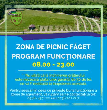 Program extins la zona de picnic Făget începând cu 1 mai