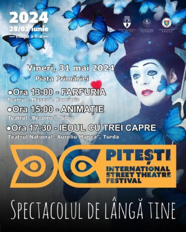 Zilele Teatrului Piteștean continuă: programul evenimentelor din Piața Primăriei Pitești – vineri, 31 mai! O zi plină de teatru și animație este oferită piteștenilor, în cadrul Festivalului Internațional de Teatru în Stradă 2024: vineri, 31 mai, în Piața Primăriei, sunt pregătite reprezentații captivante și variate, perfecte pentru întreaga familie! Programul zilei: Ora 13:00 – FARFURIA, […]