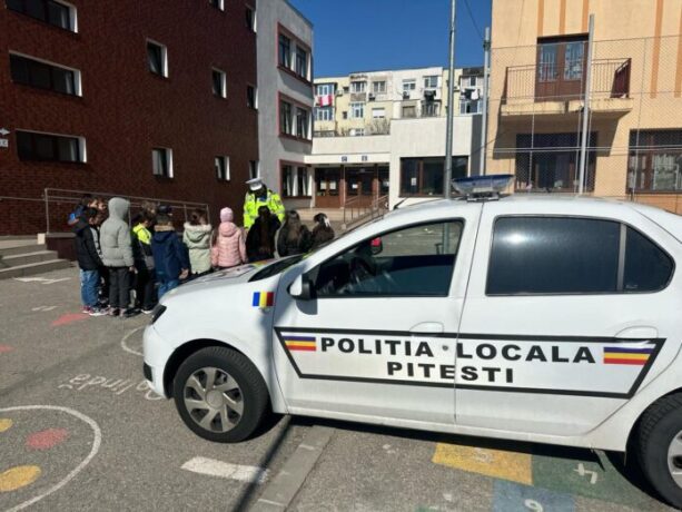Copiii Școlii Gimnaziale „Matei Basarab” din Pitești au învățat regulile de circulație de la polițiștii locali