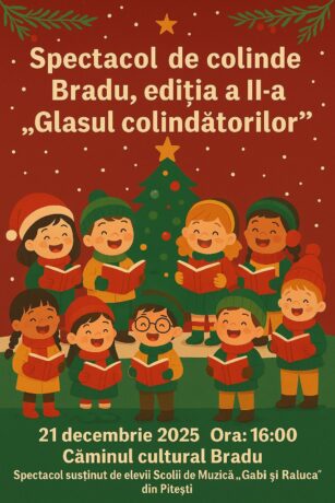 Dan Stroe invită locuitorii din Bradu la Spectacolul de colinde „Glasul colindătorilor”, ediția a II-a Primarul comunei Bradu, Dan Stroe, îi invită pe locuitori să participe sâmbătă, 21 decembrie 2025, la Spectacolul de colinde „Glasul colindătorilor” – ediția a II-a, un eveniment dedicat tradițiilor și spiritului autentic al Crăciunului. Manifestarea va avea loc de la […]