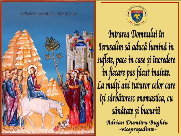 Intrarea Domnului în Ierusalim să aducă lumină în suflete, pace în case și încredere în fiecare pas făcut înainte. La mulți ani tuturor celor care își sărbătoresc onomastica, cu sănătate și bucurii! Adrian Dumitru Bughiu, vicepreședinte Consiliul Județean Argeș