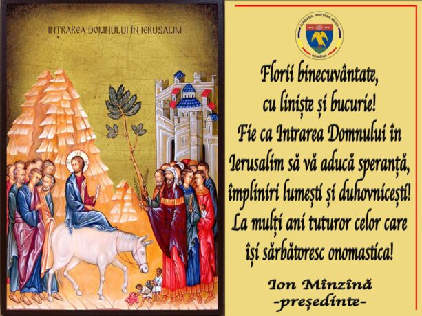 Florii binecuvântate, cu liniște și bucurie! Fie ca Intrarea Domnului în Ierusalim să vă aducă speranță, împliniri lumești și duhovnicești! La mulți ani tuturor celor care își sărbătoresc onomastica! Ion Mînzînă, președinte CJ și președintele PSD Argeș