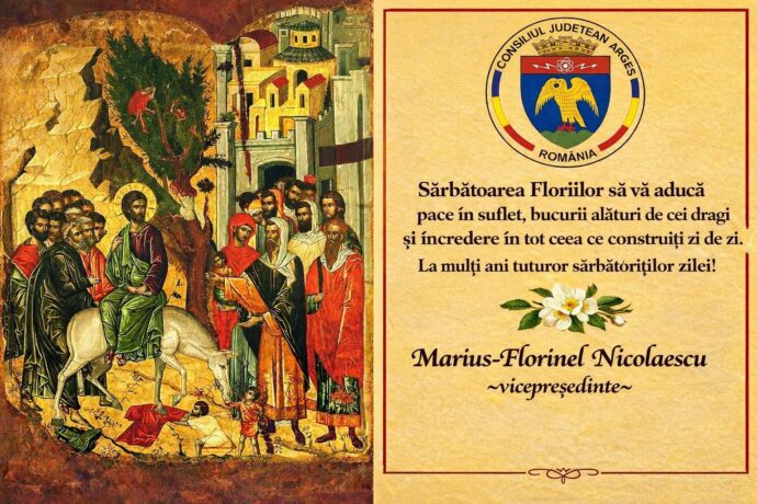 Sărbătoarea Floriilor să vă aducă pace în suflet, bucurii alături de cei dragi și încredere în ceea ce construiți zi de zi. La mulți ani tuturor sărbătoriților acestei zile! Marius Nicolaescu, vicepreședinte Consiliul Județean Argeș