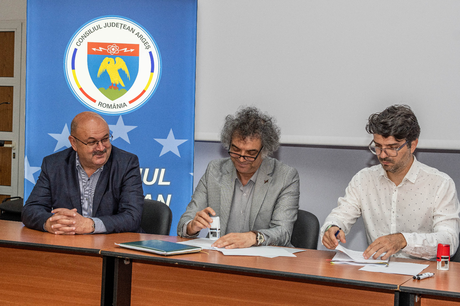 Astăzi a fost semnat contractul pentru începerea lucrărilor de consolidare și reabilitare a clădirii Teatrului pentru Copii și Tineret “Așchiuță”, secție a Teatrului “Al. Davila”, instituție finanțată de Consiliul Judetean Arges.