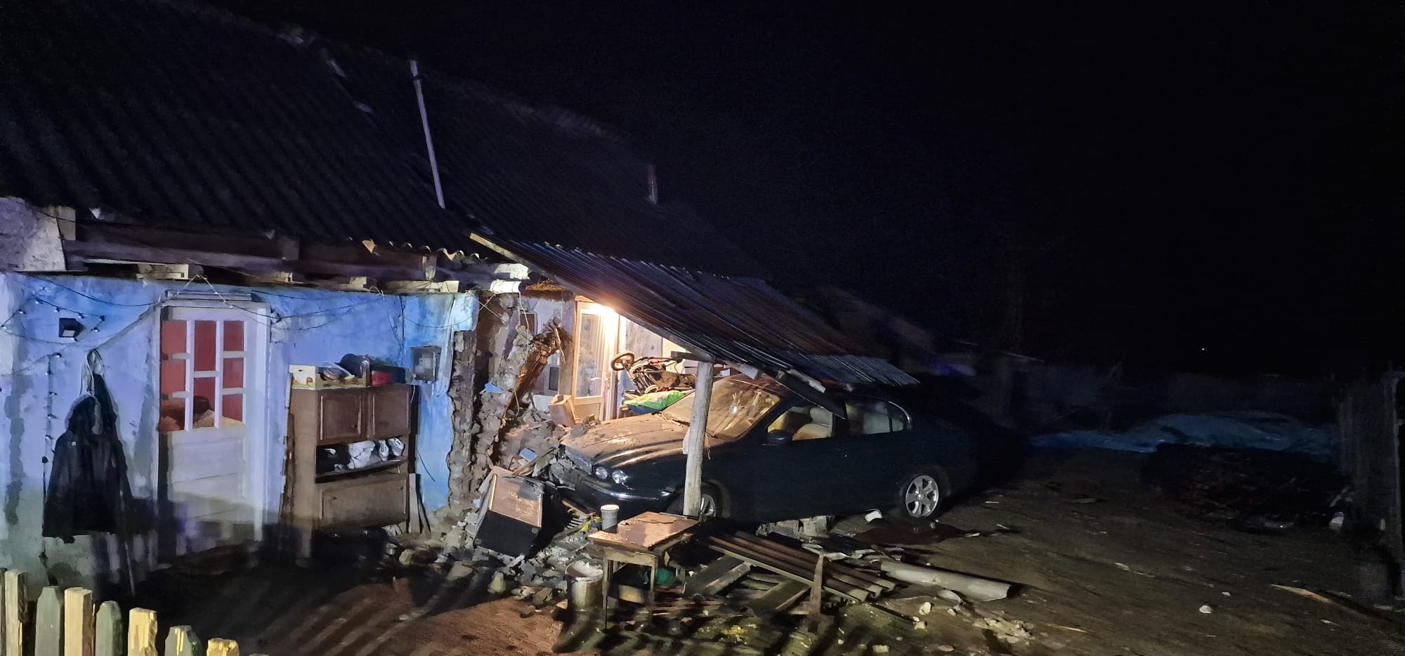 Este vorba despre un autoturism care a lovit o anexă gospodărească.