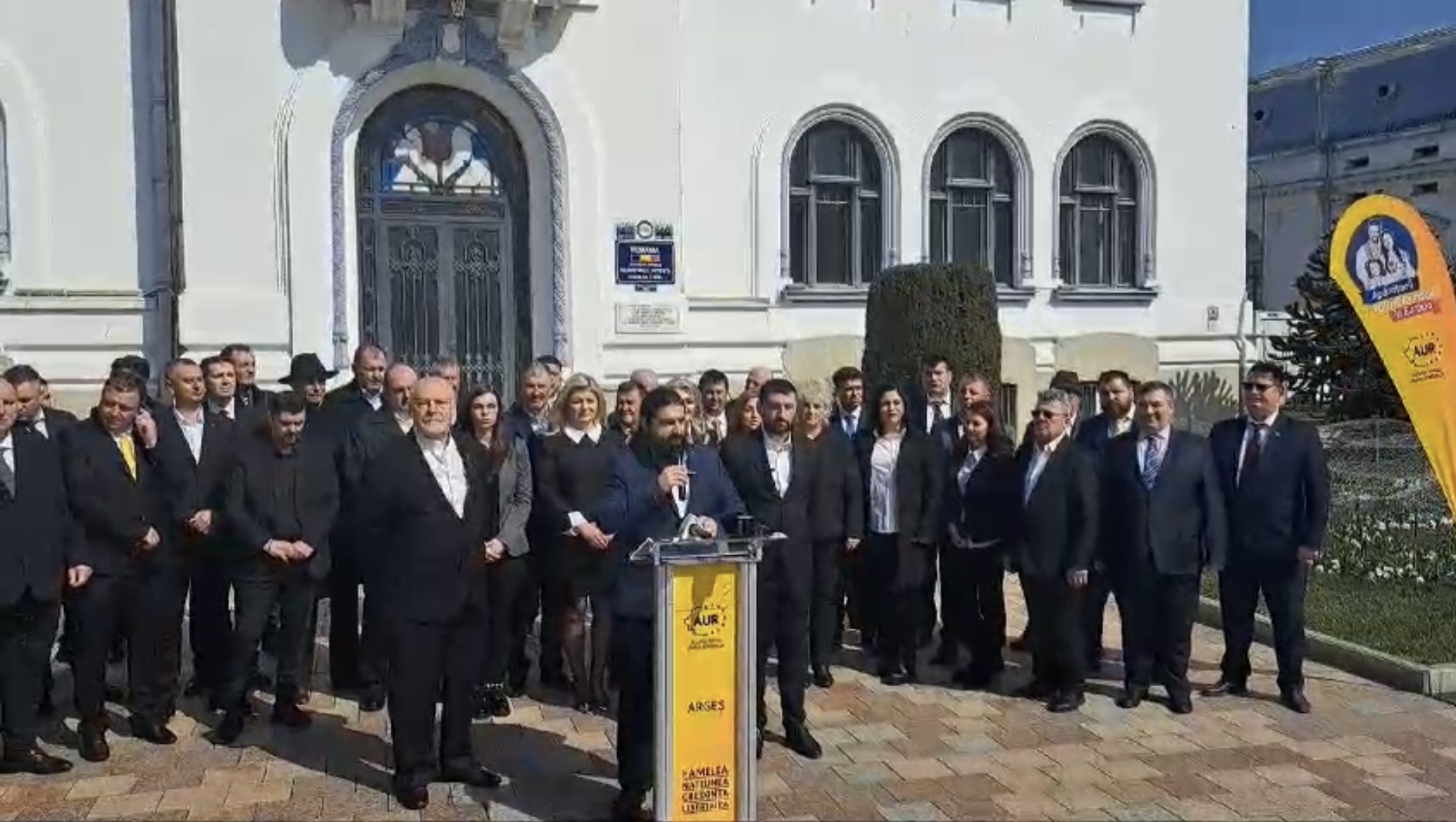 Anunțul a fost făcut în prezența deputatului de Argeș al AUR Eugen Chelaru, al președintelui AUR Argeș Bogdan Velcescu și al fondatorului AUR Marius Dorin Lulea.