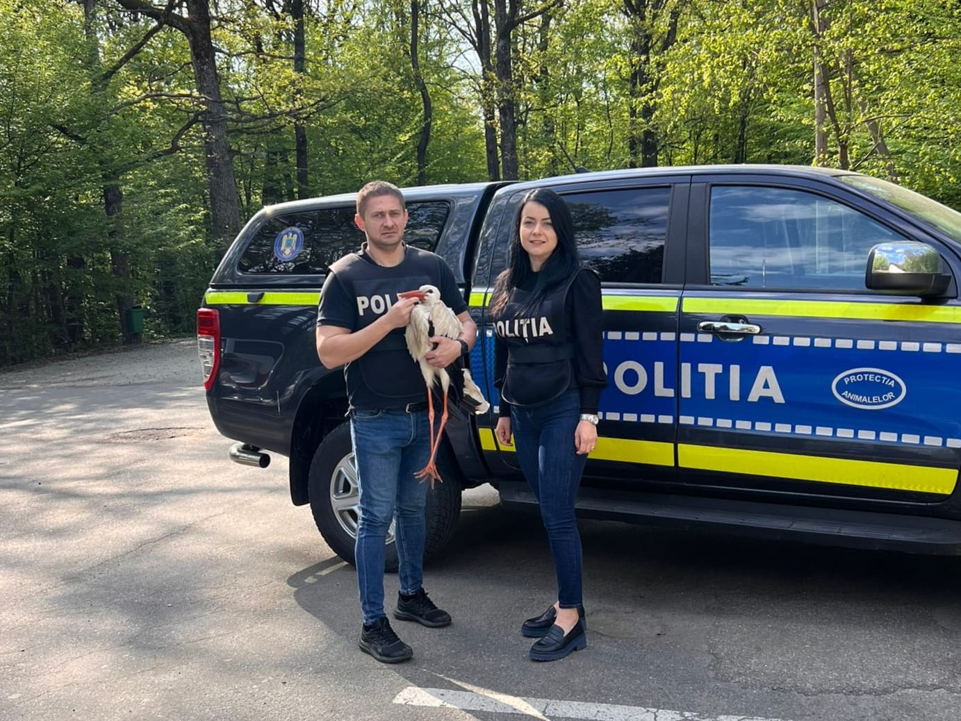 Barză rănită, salvată de polițiștii Biroului pentru Protecția Animalelor Argeș