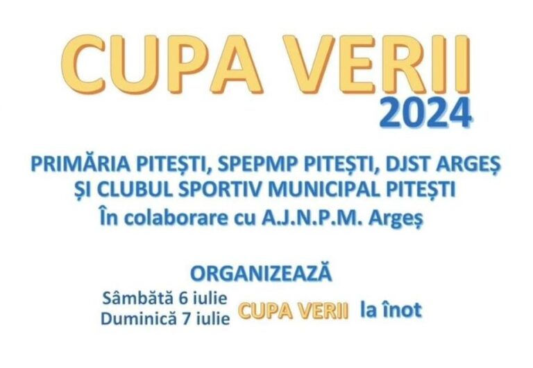 CSM Pitești, împreună cu Primăria Municipiului Pitești, prin Serviciul Public de Exploatare a Patrimoniului Municipiului Pitești, DJST Argeș, în colaborare cu A.J.N.P.M. Argeș, organizează „Cupa Verii la înot” în perioada 6-7 iulie 2024.