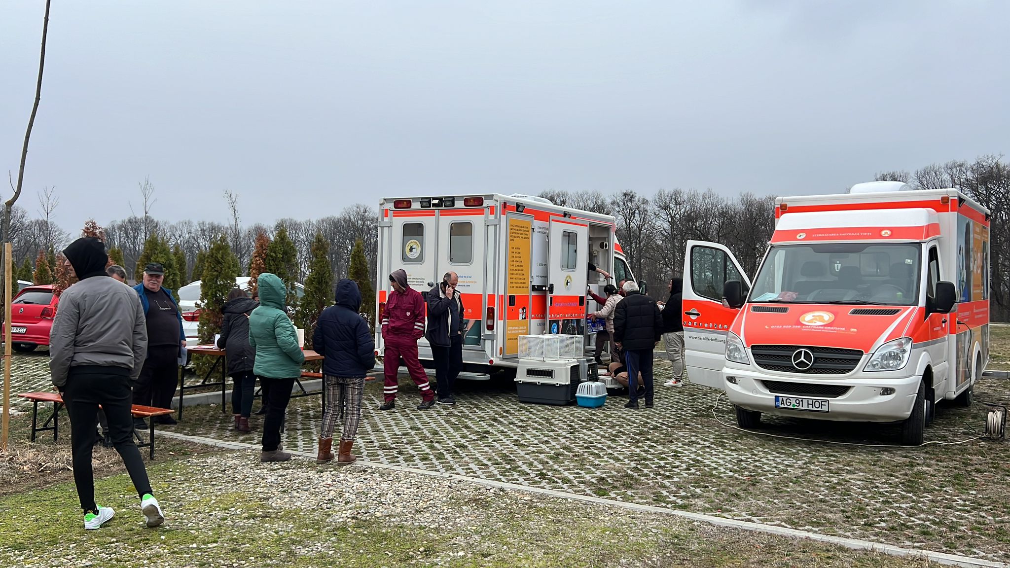 Acțiunea se desfășoară în Zona de picnic Făgetu – Mioveni, iar echipele de medici sunt aici special pentru a steriliza animalele de rasă comună.