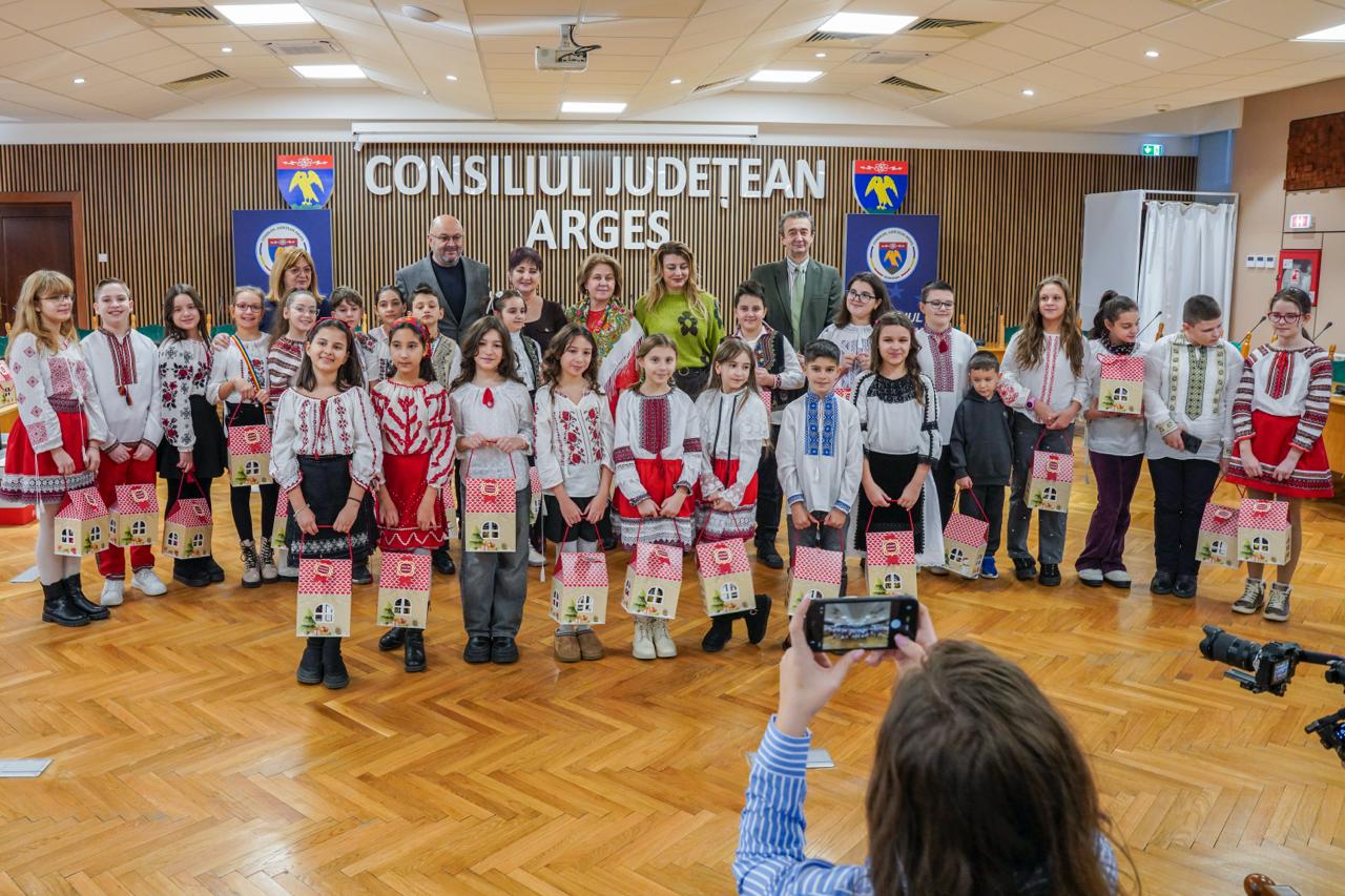 Președintele Consiliului Județean Argeș, Ion Mînzînă, alături de prefectul județului Ioana Făcăleață, secretarul județului Ionel Voica, directorul executiv al Direcției Cultură, Turism și Tineret, Roxana Stoenescu, și de funcționarii instituției, au primit cu emoție colindele celor care au adus bucuria sărbătorilor în sufletele tuturor.