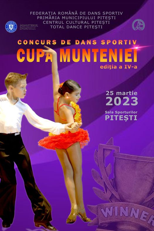 Federația Română de Dans Sportiv, Primăria Municipiului Pitești, prin Centrul Cultural Pitești, și Clubul „Total Dance” Pitești organizează Concursul Național de Dans Sportiv ,,Cupa Munteniei”, sâmbătă, 25 martie 2023, la Sala Sporturilor, în intervalul orar 09:00- 22:00.