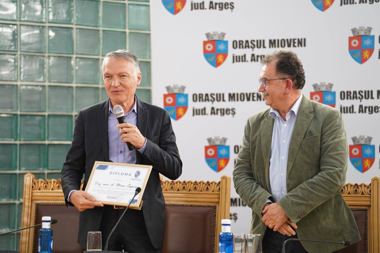 În cadrul ceremoniei, primarul Aurel Costache a înmânat o diplomă de apreciere domnului prof. univ. dr. coordonator Miron Zapciu, în semn de recunoaștere a contribuției sale deosebite la dezvoltarea și coordonarea acestui program.