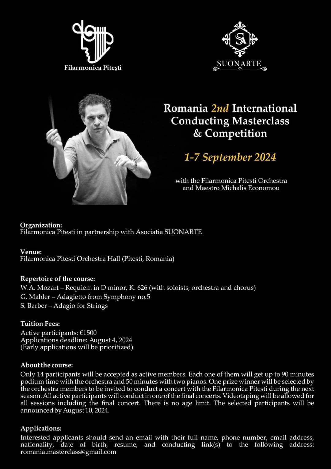 În luna septembrie, Filarmonica Pitești va fi gazda evenimentului „Romania 2nd International Conducting Masterclass&Competition”.