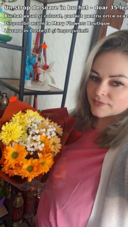 Florăria Mary Flowers Boutique livrează rapid în Costești și localitățile limitrofe – Suseni, Rociu, Broșteni și Șerboieni, dar vă puteți duce direct în paradisul florilor Mary Flowers Boutique din Costești, Strada Pieții