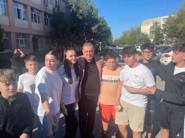 Gentea, asaltat de elevi entuziaști ai Școlii Alexandru Davila din Pitești. Toți au vrut să facă poze cu primarul!