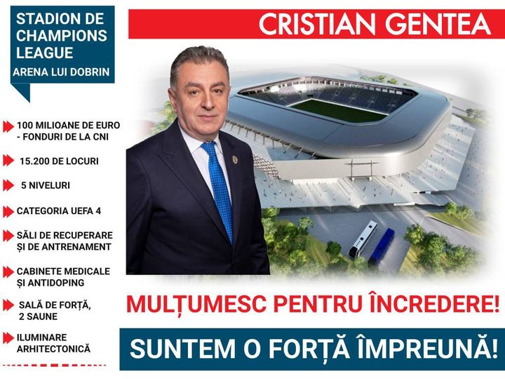 ”Am promis un stadion nou Piteștiului, un stadion care va dăinui și va duce mai departe numele lui Nicolae Dobrin!”, anunță primarul municipiului Pitești, Cristian Gentea.