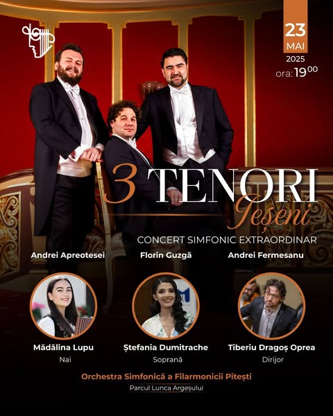 Vineri, cei 3 Tenori Ieșeni ne vor bucura, tot în premieră, în superbul parc Lunca Argeșului.