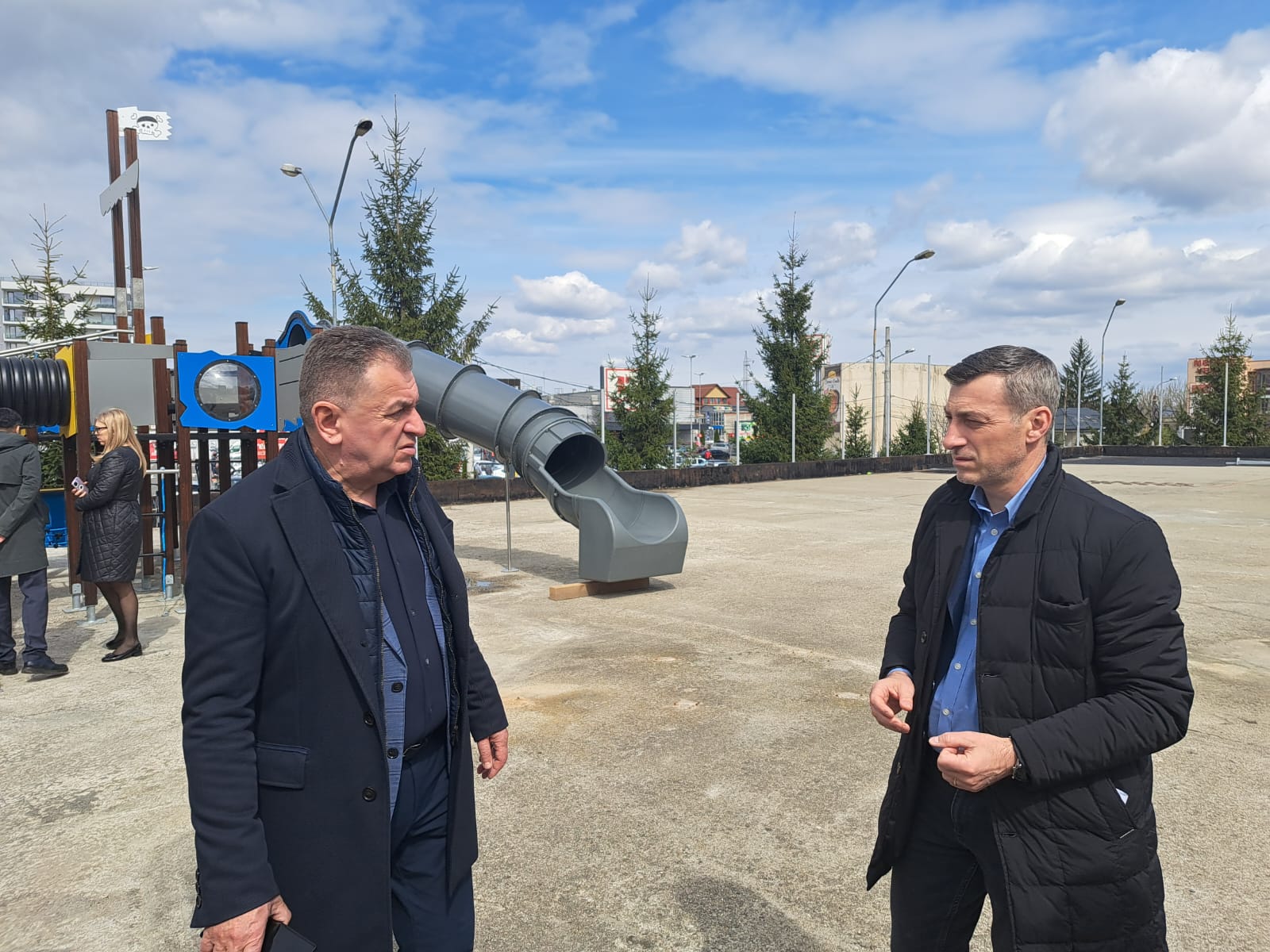 Lucrarea este executată de SC DFS Center Grup SRL care lucrează și la noul loc de joacă din Parcul Lunca Argeșului.