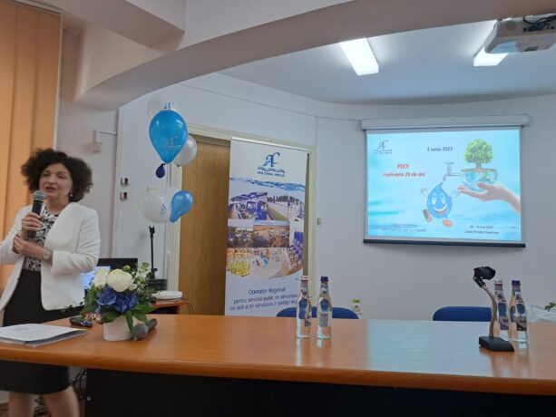 La aniversarea lui Picky – mascota SC Apă Canal 2000 SA Pitești – directorul societății, Mihail Marinescu, a făcut o trecere în revistă a obiectivelor de investiții ale SC Apă Canal 2000 SA Pitești, după care s-a adresat participanților la eveniment.