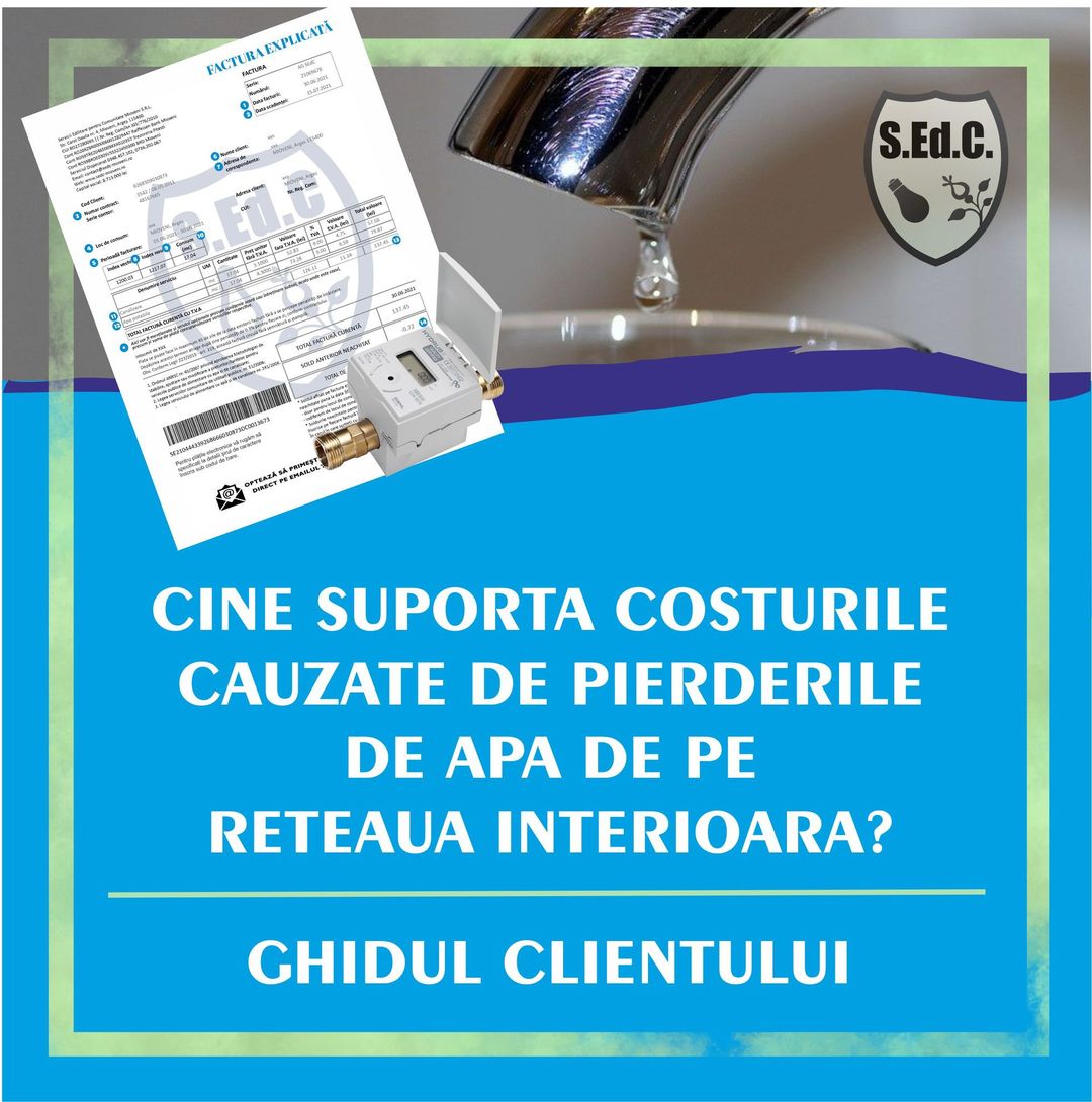 Pierderile de apă apărute pe rețelele interioare sunt suportate integral de către Utilizatori, întrucât facturarea se realizează în baza citirii indexului contorului de branșament, care este și punctul de delimitare dintre rețeaua publică și cea privată, atrage atenția SC Servicii Edilitare pentru Comunitate Mioveni.