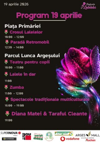 Spectacol de folclor sub egida Festivalului „Simfonia Lalelelor” 2026 Centrul Cultural Pitești organizează un spectacol de folclor, coordonat de profesorul de canto popular Valentin Grigorescu, eveniment dedicat Festivalului „Simfonia Lalelelor”, ediția a 49-a, care se va desfășura duminică, 19 aprilie, de la ora 16.00, în Parcul „Lunca Argeșului”. Evenimentul va fi susținut de: Polina Gheorghe, […]