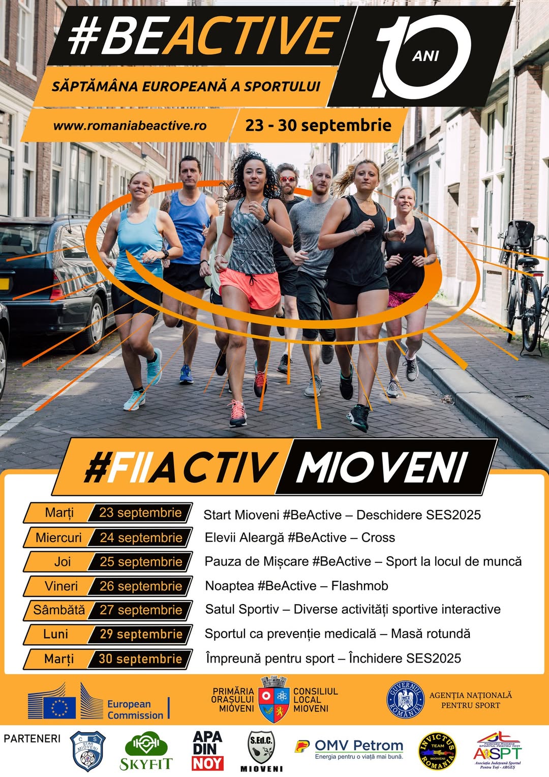 În perioada 23 – 30 septembrie, Orașul Mioveni participă la ediția din acest an a proiectului România Be Active – Săptămâna Europeană a Sportului.