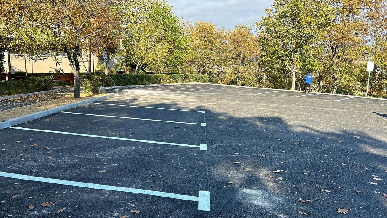Parcarea nou asfaltată, pe o suprafaţă de aproximativ 1200 mp, asigură 35 de locuri de parcare, marcate și reabilitate.