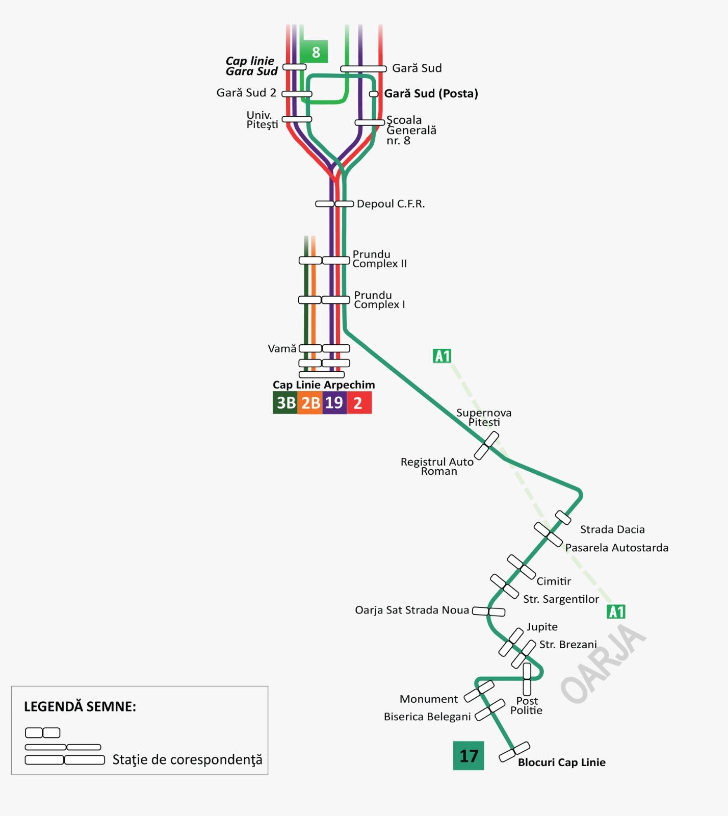 Începând cu 1 ianuarie 2023, operatorul regional PUBLITRANS 2000 S.A și Asociația de Dezvoltare Intercomunitară pentru Transport Public Pitești vor asigura serviciile de transport public local şi pe raza comunei Oarja. Noul traseu va fi asigurat prin Linia 17 şi va fi următorul: plecare punct de îmbarcare Gară Sud Poştă, Bulevardul Fraţii Goleşti, Bulevardul Petrochimiştilor, DN65B (Registrul Auto Român/Carrefour pentru retur), drumul judeţean 702G, pasarelă autostrada prin drumul judeţean 503, cap linie Oarja (blocuri).