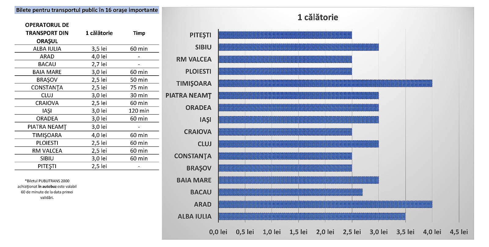 Conform analizei efectuate la nivel național cu privire la transportul public în comun, municipiul Pitești are cel mai mic tarif al unei călătorii integrate pe bază de bilet. Prețul de 2,5 lei/persoană/călătorie este valabil atât pentru cursele efectuate pe raza orașului, cât și pentru zona metropolitană.