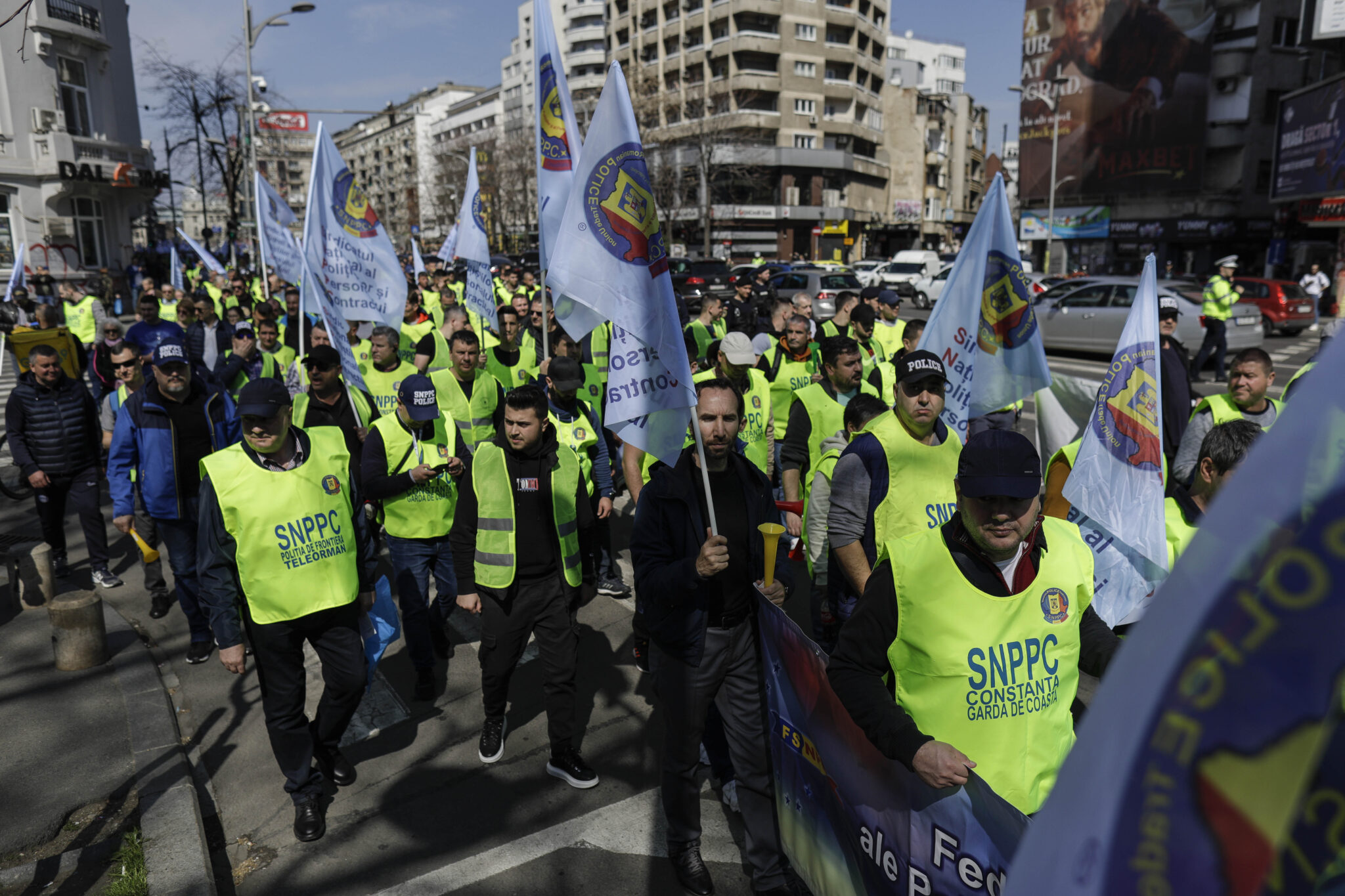 Sindicaliștii din Poliție protestează marți la sediul Ministerului de Interne. Ei cer, între altele, salarii, norma de hrană și sporuri mai mari, scoaterea pensiilor militare din PNRR și diminuarea deficitului de personal.