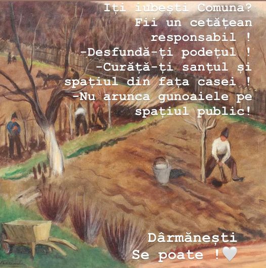Toată lumea civilizată a înţeles că  adminstrarea unei localităţi  nu poate fi la cote înalte fără colaborarea dintre comunitate şi primărie. Fiecare are rostul şi mai ales rolul ei. Fiecare cetăţean civilizat conştientizează că localitatea sa nu poate fi nici curate, nici frumoasă  fără implicarea comunităţii. Pentru o astfel de implicare, Primăria Dârmăneşti a demarat un proiect de conştientizare a comunităţii cu privire la spiritual civic, astfel încât fiecare în parte să îşi cureţe şanţurile din faţa casei, să desfunde podeţele şi mai ales să nu mai arunce gunoaiele la întâmplare. Astfel de campanii sunt necesare în tot judeţul, având în vedere că populaţia  nu este  conştientă pe deplin că are şi nişte obligaţii civice faţă de localitatea în care trăieşte.