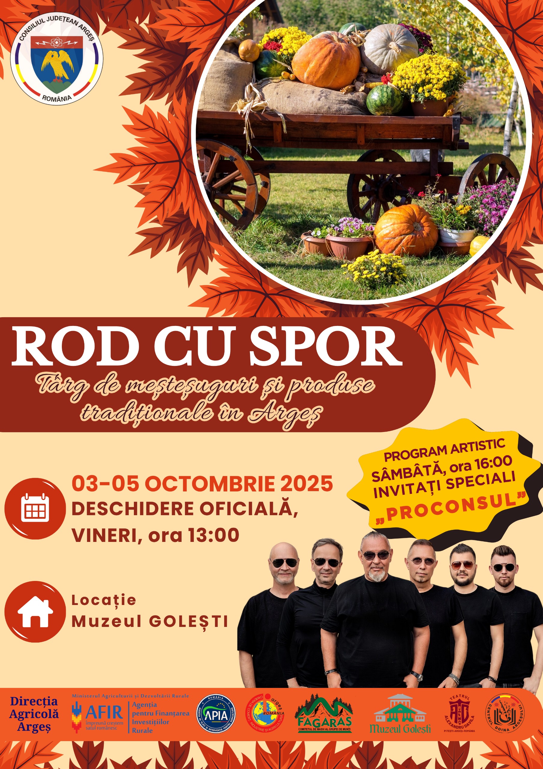 Toamna se gustă la ROD CU SPOR! TÂRGUL DE MEȘTEȘUGURI ȘI PRODUSE TRADIȚIONALE, ediția a IV-a, 3 și 5 octombrie, la Muzeul Golești!