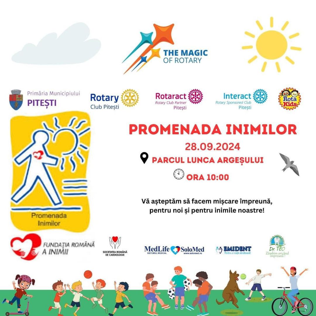 Rotary Club Pitești, împreună cu Societatea Română de Cardiologie și Fundația Română a Inimii, continuă, și în 2024, programul „Promenada Inimilor”, o acțiune dedicată tuturor vârstelor, pentru a marca Ziua Mondială a Inimii.