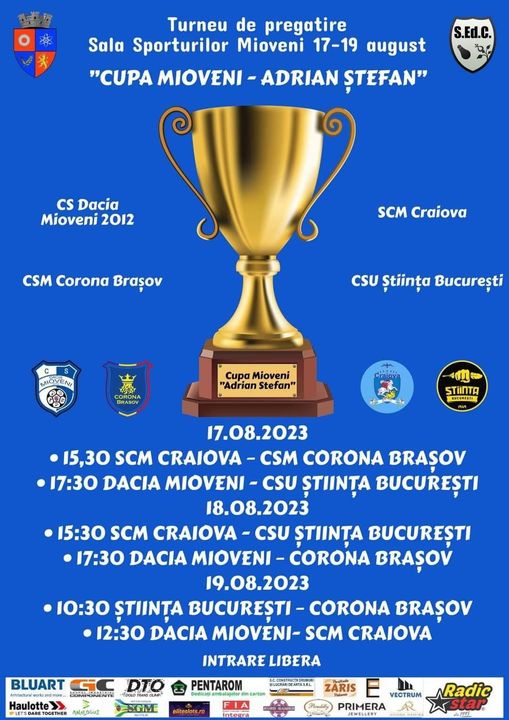 În perioada 17-19 august, orașul Mioveni găzduiește Turneul ”Cupa Mioveni – Adrian Ștefan”, la care participă echipele: