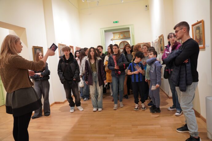 Oaspeții au ascultat poveștile ghizilor, au explorat spațiile muzeale și s-au lăsat fascinați de detalii. Curiozitatea i-a condus mai departe: au căutat informații direct pe telefoane, au făcut fotografii și au surprins momentele care i-au impresionat. Bineînțeles, nu au lipsit selfie-urile, inclusiv în fața unei spectaculoase oglinzi venețiene din cristal, parte din patrimoniul muzeului încă din 1970.
