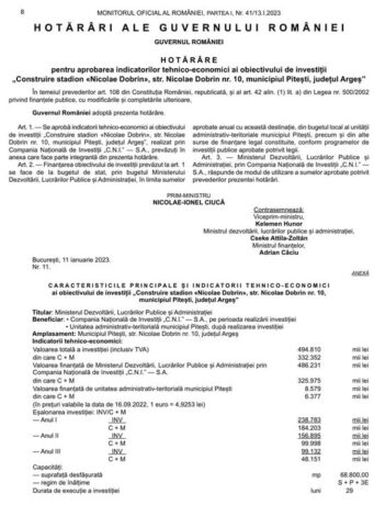 stadion Nicolae Dobrin din Pitești a fost publicată în Monitorul Oficial!