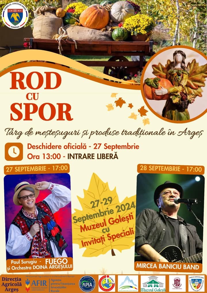 Vino la cel mai frumos eveniment al toamnei! ROD CU SPOR – târgul de produse tradiționale, în perioada 27 – 29 septembrie, la Muzeul Golești.