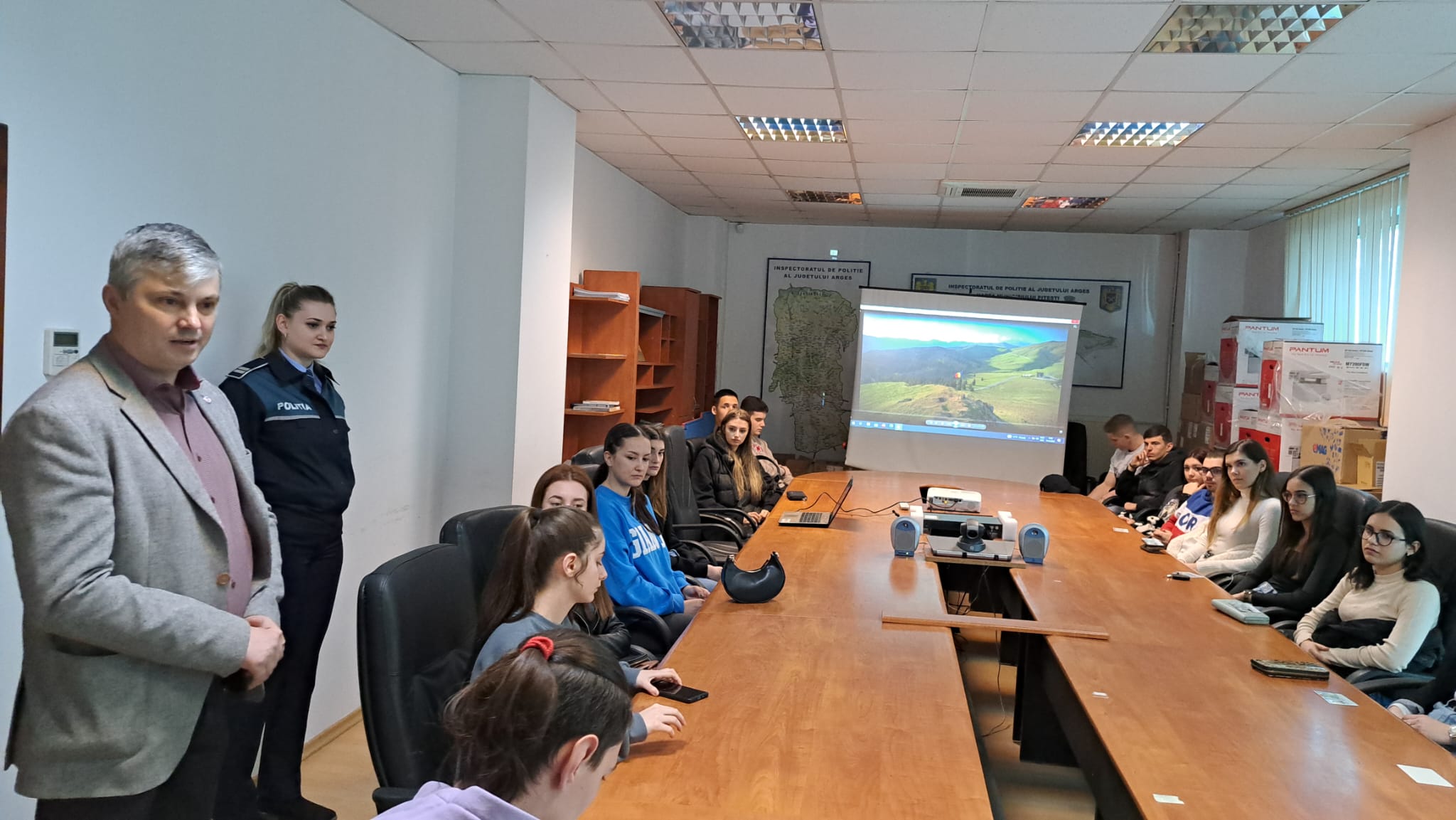 Despre aspecte practice ale meseriei de polițist, le-a vorbit șeful Biroului Investigații Criminale Pitești, președinte al Corpului Național al Polițiștilor – Filiala Argeș, un polițist cu experiență, care a investigat multe cazuri de infracțiuni grave. Comisarul șef este și partener în proiecte de educare a elevilor în domenii de prevenire a adicțiilor.