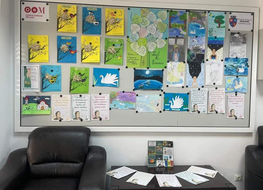 Elevii școlii George Topîrceanu au realizat creații plastice reunite în expoziția denumită sugestiv “Mihai Eminescu – la ceas aniversar”. Acestea sunt expuse în foaierul Centrului Cultural Mioveni până în data de 23 ianuarie 2025.